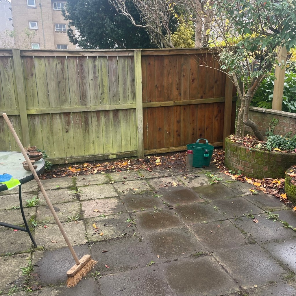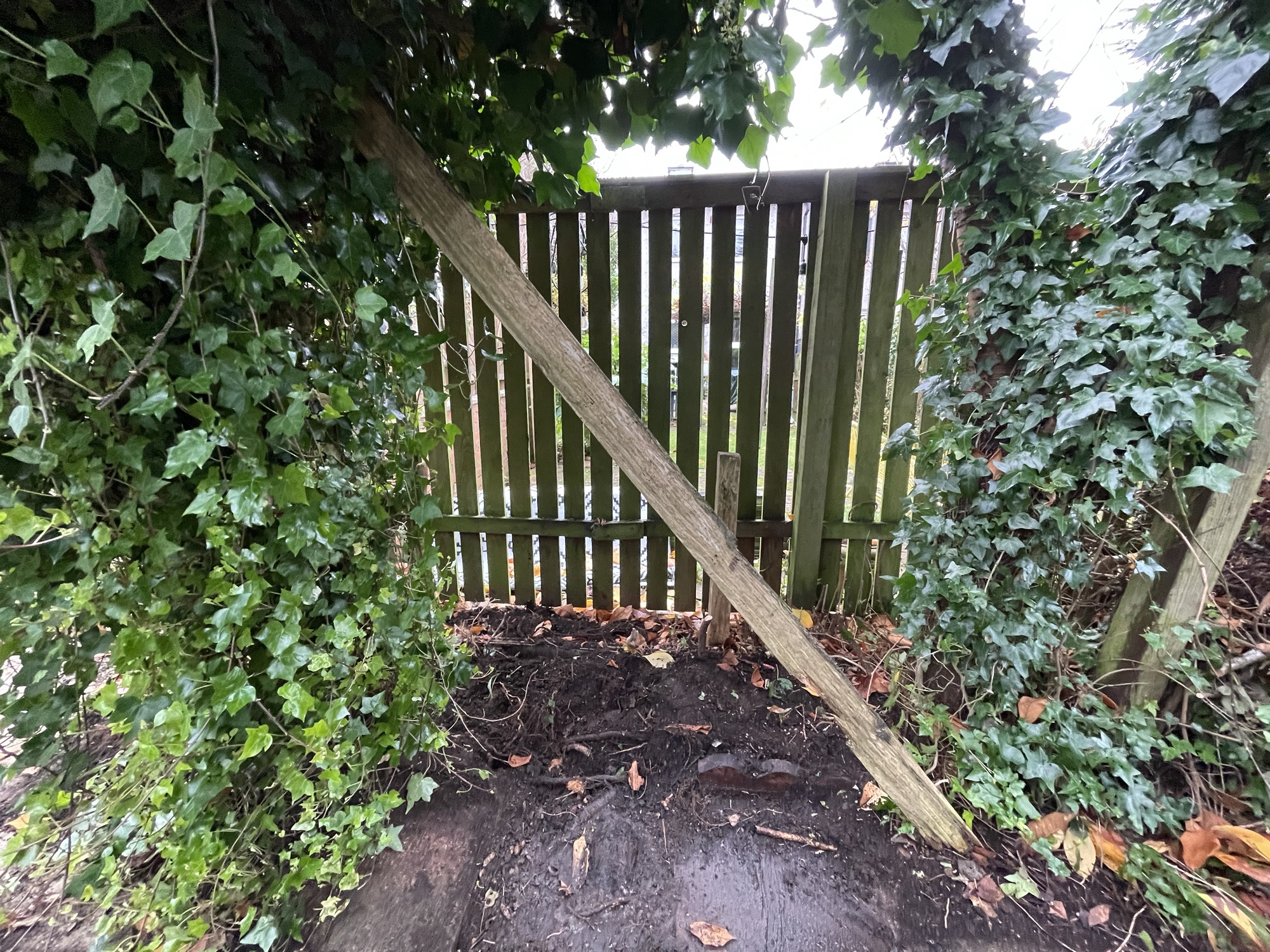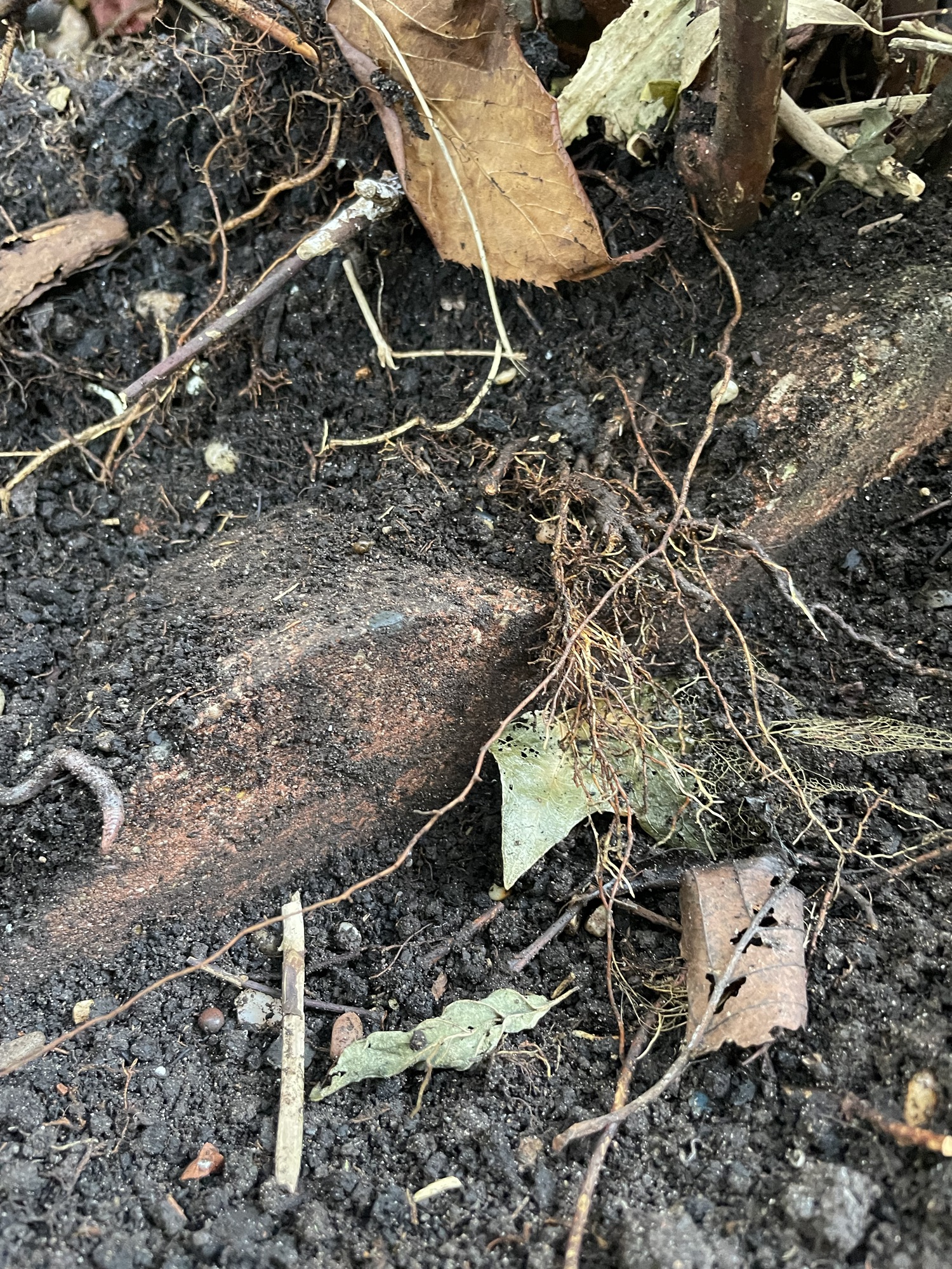 In the very final warm days I decided to try clearing a little further back. I’ve mainly been putting work into the patio area and the long, skinny beds along the side. However, the ivy “tree” we have growing at the beginning of the path was surrounded with weeds and dead branches and garbage and I wanted to give it a good clean so it was less of an eye sore. Ohhh boy was it a mess! Beyond clipping back the ivy, I also uncovered a decaying picket fence and scalloped pavers! I was able to tidy it very nicely and give myself a better idea of its potential. I think I will make it into a little hidden flower bed for some shady varieties and maybe hide some gnomes and fairies under the cover of ivy. I had to pull out some of the paving slabs that were tipping out of the soil from the massive roots pushing from underneath. So my plan is to leave those tiles out and just extend the bed forward, then hide the roots with mulch and trailing flowers.